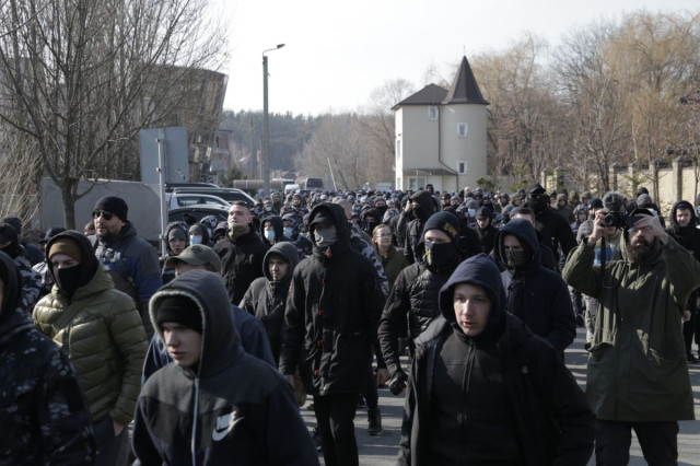 Представники «Національного корпусу» та «Національних дружин» 4 березня, вдруге за останній тиждень, заблокували маєток сина заступника секретаря Ради національної безпеки і оборони (РНБО) України Ігоря Гладковського. Під розкішним будинком в селі Козин (Київська область) зібралося близько тисячі мітингувальників, які вимагають негайно заарештувати всіх причетних до корупційного скандалу з обкраданням українського оборонпрому.