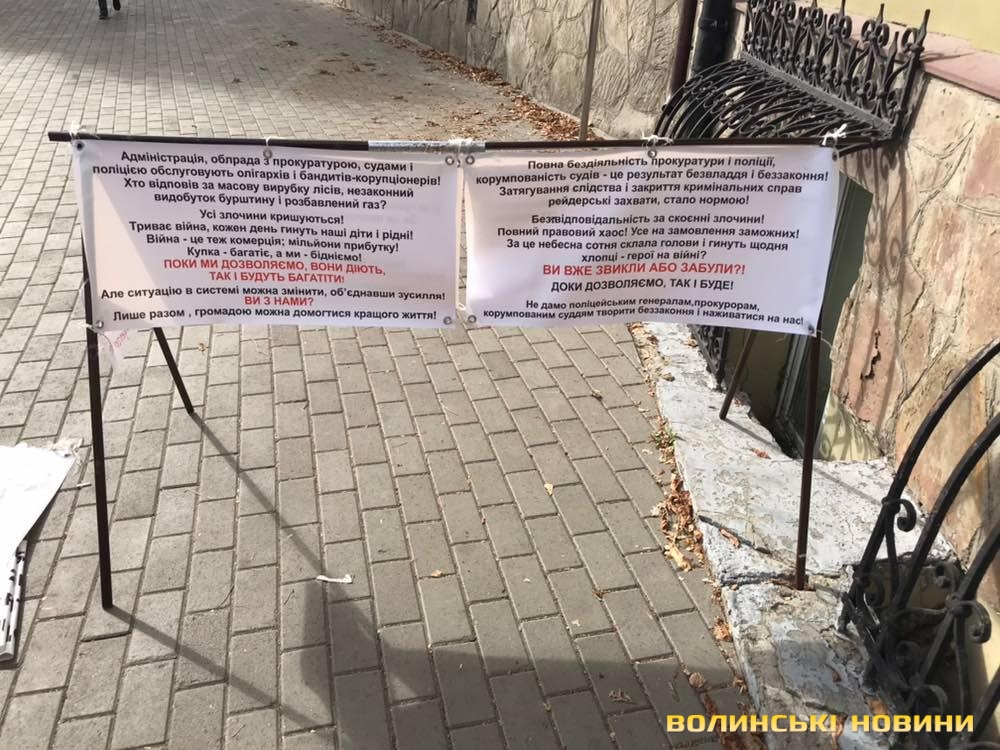 Першочергово відома луцька активістка Оксана Марищак зазначила, що акція протесту її та однодумців - безстрокова, а її мета - зняття з посад очільників прокуратури та поліції Волині.