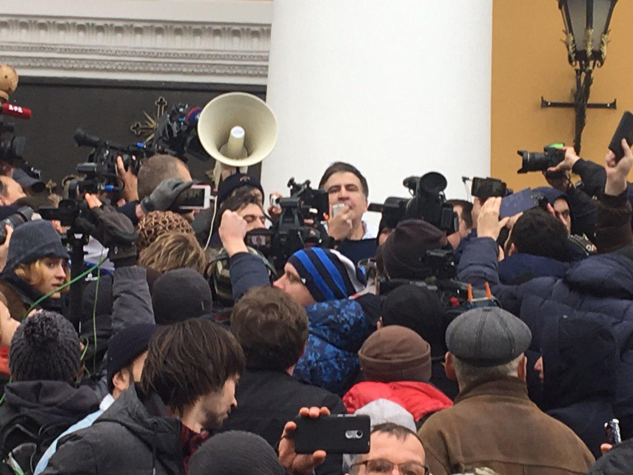 Колишній голова Одеської ОДА Міхеїл Саакашвілі звільнений протестувальниками з мікроавтобуса, в якому він утримувався працівниками СБУ. Згідно з попередньою інформацією, активісти перерізали шини в авто, інформує ТСН.