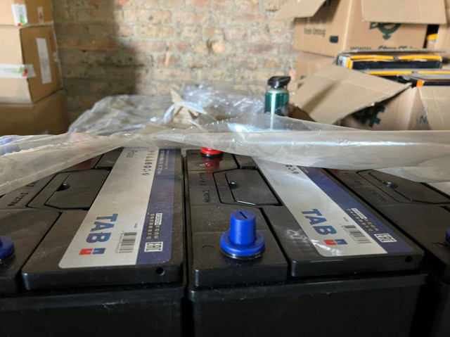 Акумулятори та шини, конфісковані з російських фур на Волині, передали військовим. Фото