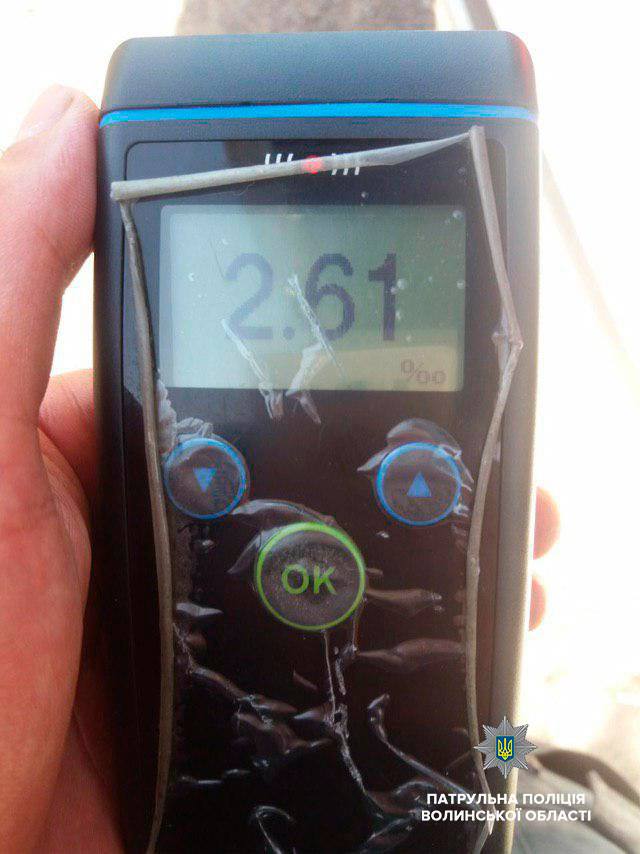 Результат – 2,61 проміле, що перевищує допустиму норму у понад 13 разів.