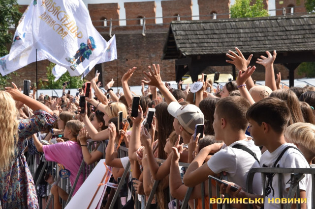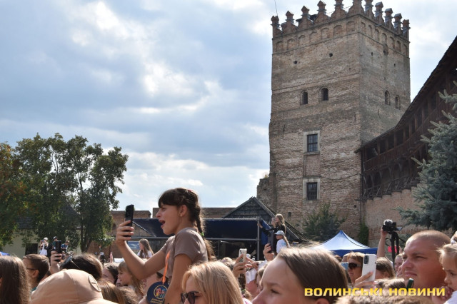 Для місцевої публіки виступила волинська співачка Аліна Жук, відома хітом «Волошковий цвіт». Саме цією композицією вона потішила слухачів. А виконала пісню під акомпанемент живої музики, що зробило її більш ліричною.Крім музичної частини, юним учасникам фестивалю створили десятки зон для ігор, зони для майстеркласів і, звісно, фудзону зі смаколиками та напоями. А ще в охочих була змога постріляти з лука. Мішень дуже символічна – голова російського диктатора Путіна, який забрав у дітей повноцінне щасливе дитинство.Упродовж дня в Луцькому замку діти та підлітки витанцьовували під піснеспіви, робили селфі з кумирами та насолоджувалися днем безтурботності.