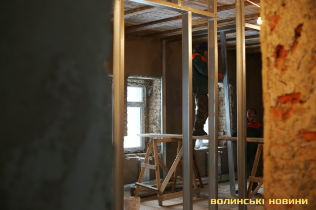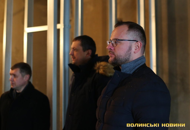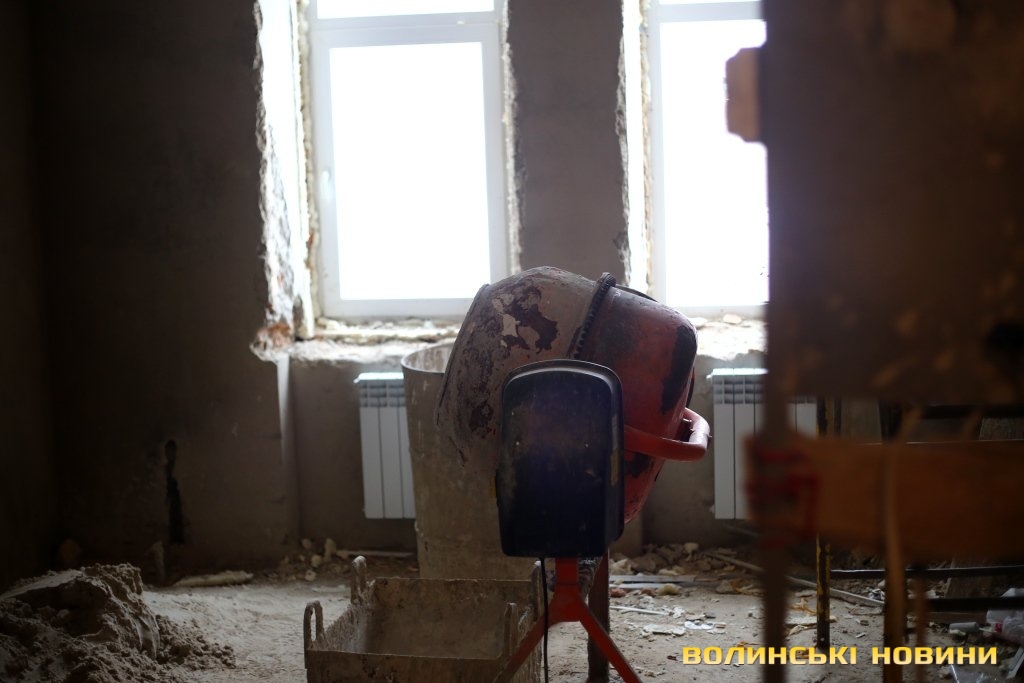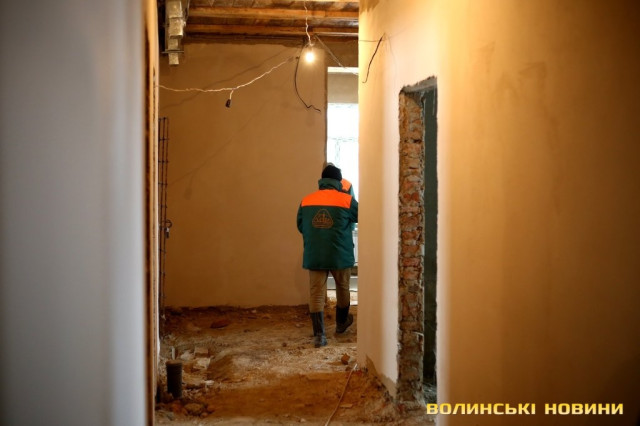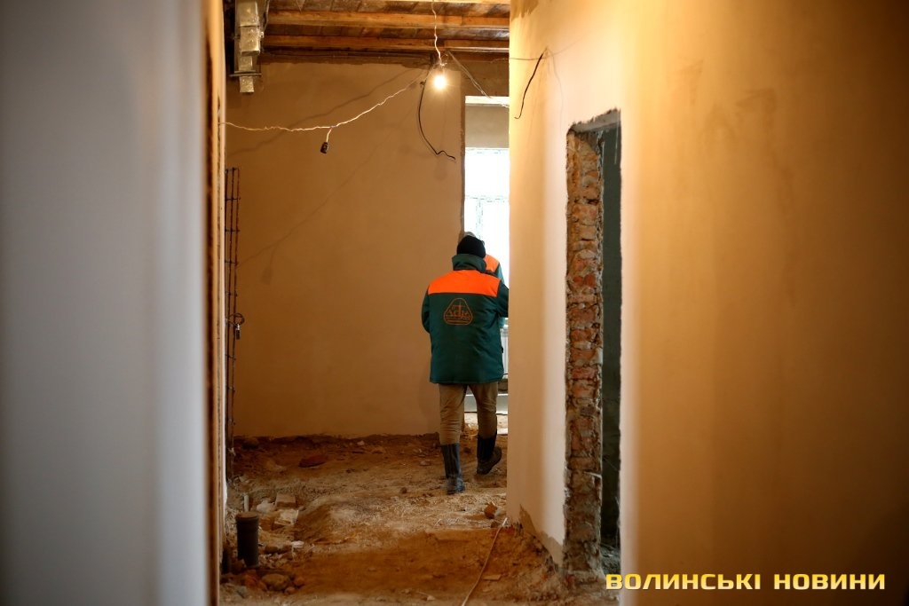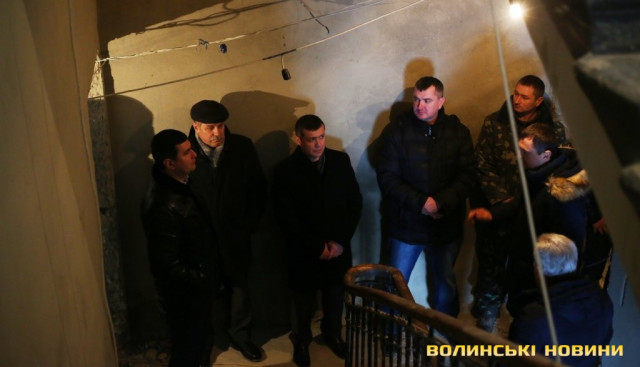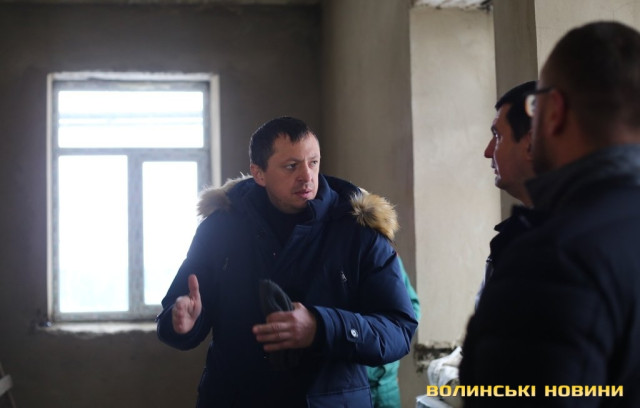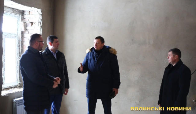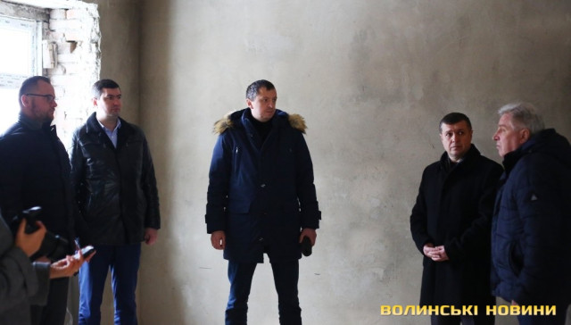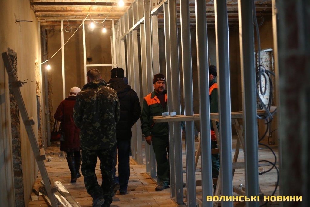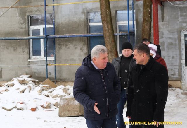Перший заступник міського голови Григорій Недопад, радник міського голови Ігор Поліщук, начальник управління капітального будівництва міськради Леонід Карабан та депутат міськради Борис Смаль та генеральний директор ПАТ «Луцьксантехмонтаж №536», яке виконує роботи, Ігор Чорнуха оглянули приміщення на вулиці Корольова, де тривають ремонтні роботи, 19 січня.