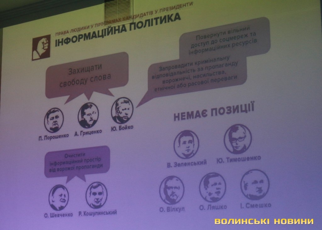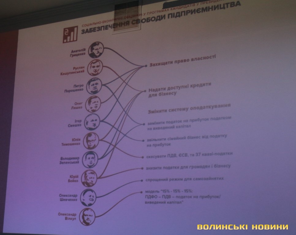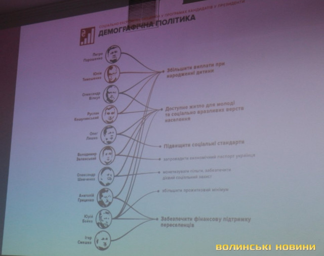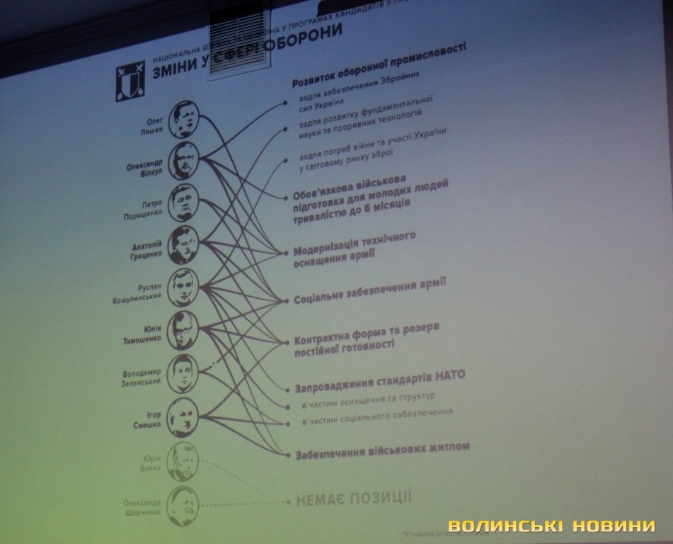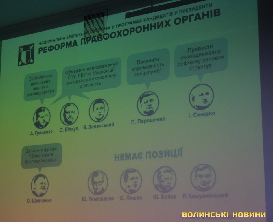 Про це йшлося під час презентації результатів аналізу результатів аналізу передвиборчих програм топ-10 кандидатів у президенти 19 березня у Луцьку.