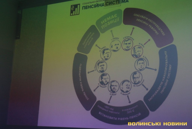 Скасувати пенсійну реформу хочуть кандидати Кошулинський та Бойко, не має позиції з цього питання Смешко, запровадити накопичувальну пенсійну систему пропонують Зеленський та Тимошенко, встановити рівень пенсій у розмірі 300 євро хоче Шевченко, підвищити рівень пенсій обіцяють Порошенко та Гриценко, здійснити перерахунок пенсій – Ляшко, встановити пенсію в розмірі 40% від середньої зарплати – Вілкул.