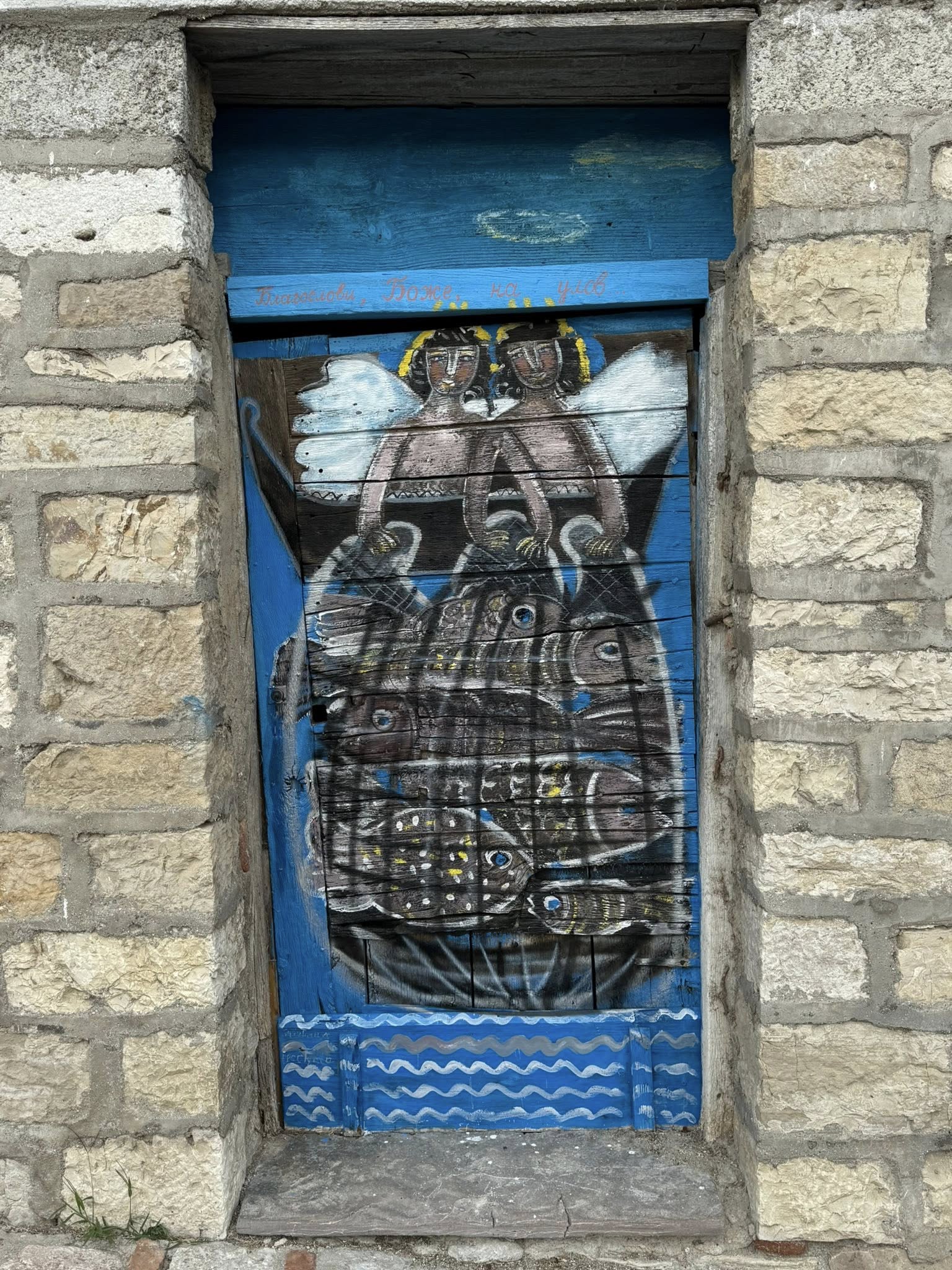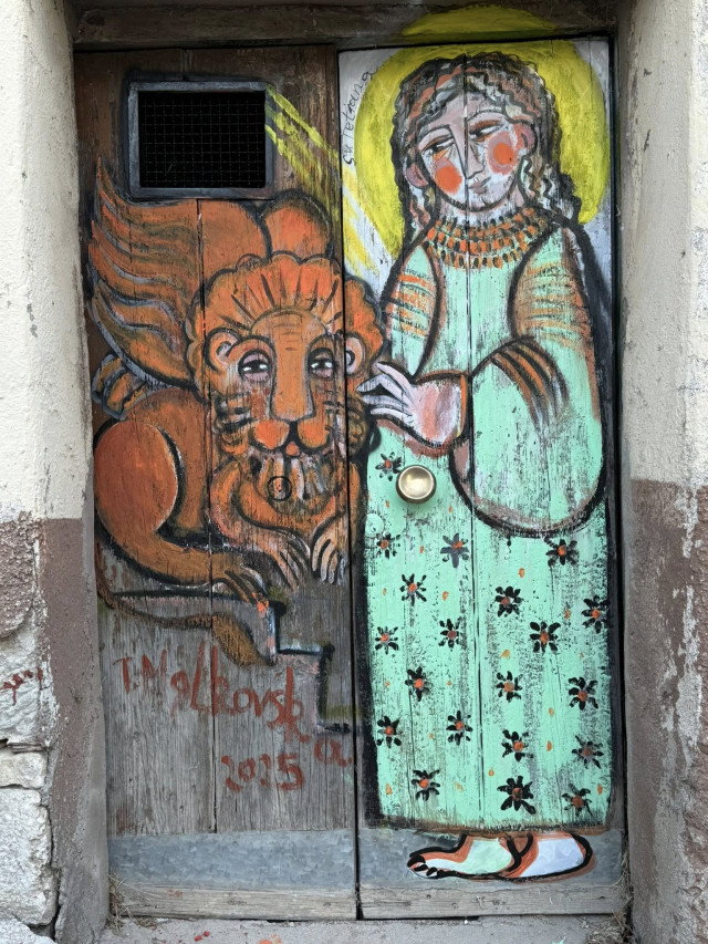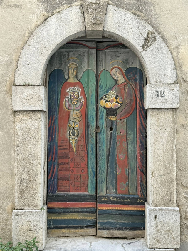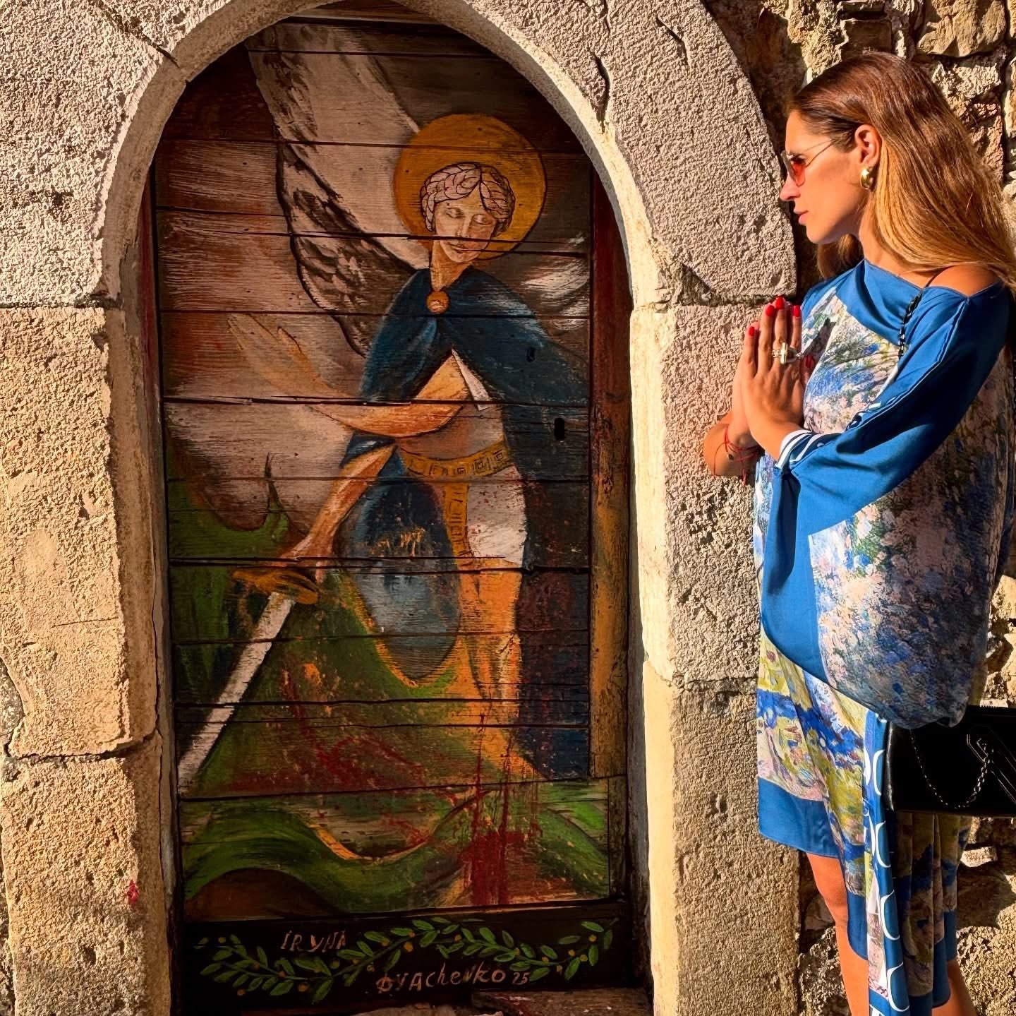 «Тут живеш ніби в самому небі. Місце молитви і медитації… А ще обвіяні столітнім вітром деревʼяні двері, з яких дихає історія старої Італії часів лицарів та королів. Саме на цих старих дверях я вперше побачила обриси ангелів і захотіла їх розмалювати, присвячуючи розписи своєму сину Миколі», – розповіла Тетяна Мялковська.Читати ще: «Це для нас випробування»: мама загиблого Героя з Луцька, художниця Тетяна Мялковська з чоловіком стали патронатною сім’єю
