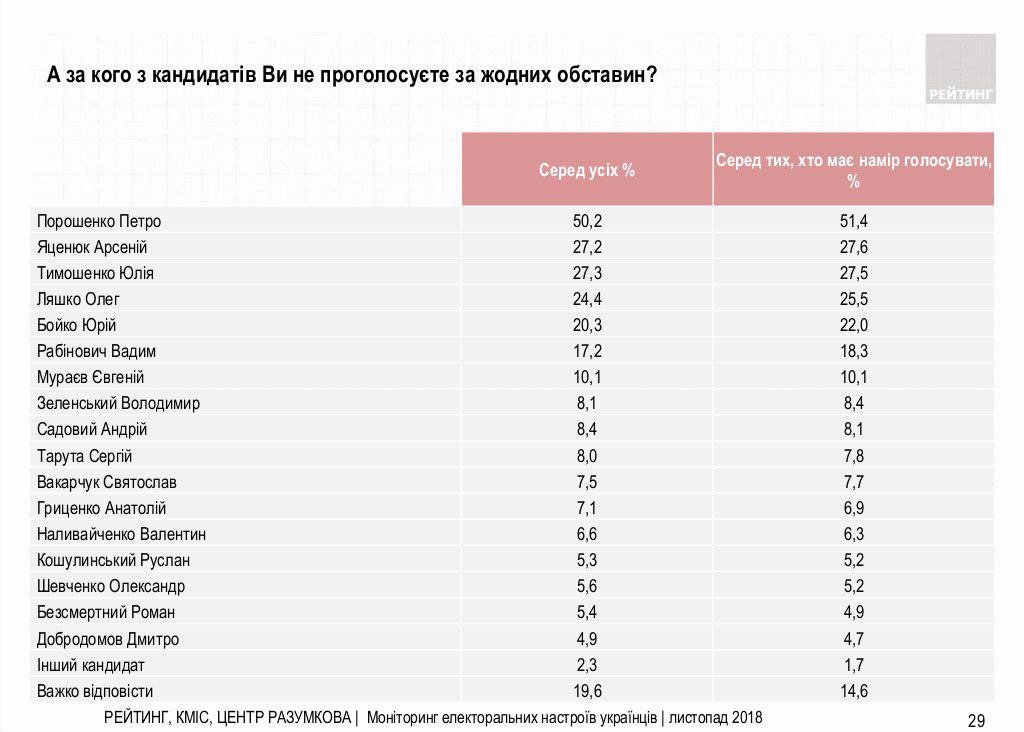 Антирейтинг Порошенка: гарант програє всім конкурентам
