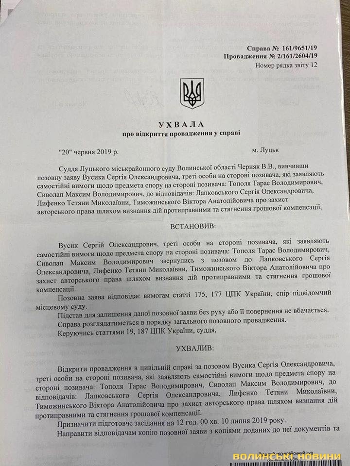 Позов проти Лапковського суд першої інстанції відхилив, тому сьогодні, 16 березня, Волинський обласний апеляційний суд розглядав апеляційну скаргу гурту на рішення суду.