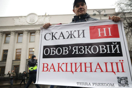 У Києві з восьмої години ранку проходить марш противників обовʼязкової вакцинації. Цей мітинг організатори анонсували як «марш за права».