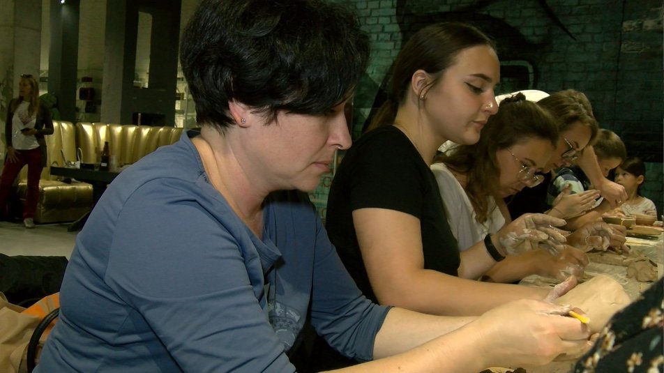 «Я багато років працювала на кераміці в Слов’янську, стало цікаво як тут, що роблять. Сюди я приїхала з двома синами та сестрою, в неї донька, ну а чоловіки наші залишились там – у теробороні воюють», – розповіла жінка.17-річна Софія Лещенко теж з Донеччини. Каже: поки живе на Волині – відвідує різні арттерапевтичні заходи.