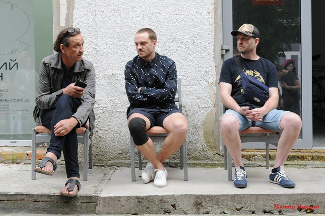Сергій Корсай: «Це вдала ідея, яку вже пропонують практикувати кожен місяць (сміється). У кожного в нас – своя ідея, але ми зійшлися на спільному творенні. Наприклад, у мене вона така: я вже багато десятків років ходжу в цю галерею, і мені страшенно подобається тут відкриття виставок. Це дуже круто, бо тут можна легко поспілкуватися з тими людьми, з якими хочеш. Але мене найбільше дратує на відкритті невідповідність багатьох картин. Як на мене, у нас багато старого, пережованого... Ми придумали, як це обійти – ми робимо виставку без картин. Таким способом ми відразу перейдемо до нашого спілкування».