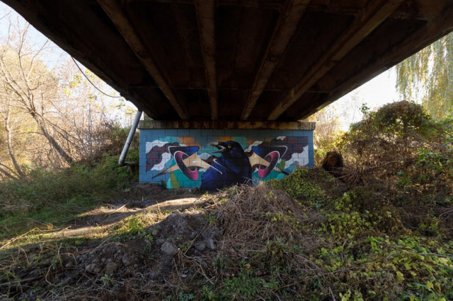 Луцький художник Андрій Присяжнюк створив у місті новий мурал, зобразивши на стіні мосту чорного ворона.