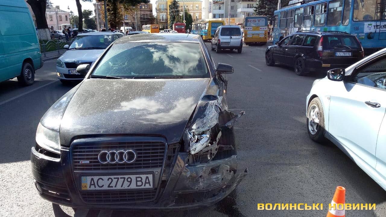 Аварія у центрі Луцька: лоб в лоб зіткнулися Audi і Ford