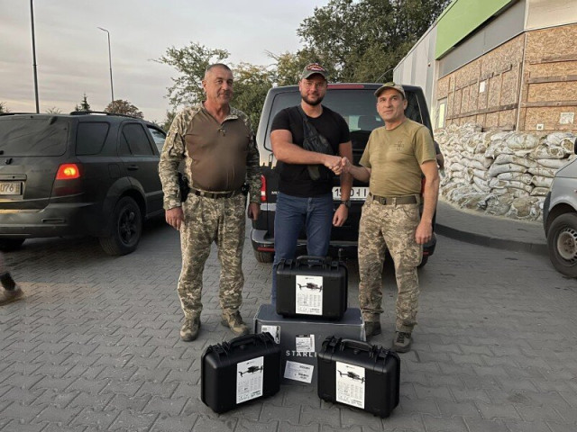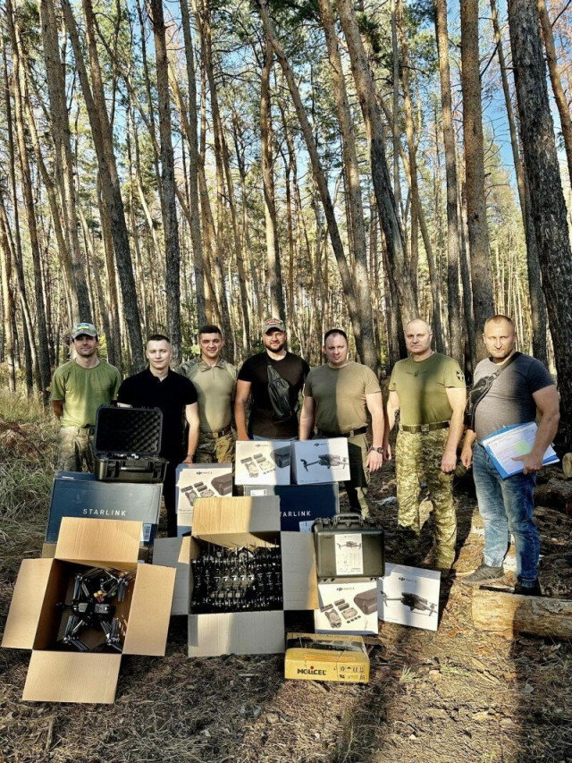 100 бригада: 9 штук Mavic 3, 3E; 3 штуки Starlink, 3 генератори 8кВт, 2 Ecoflow, антенні пісилювачі та кабелі подовження, 15 FPV-дронів, 5 планшетних ПК.