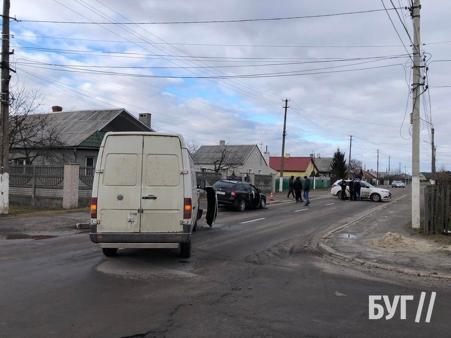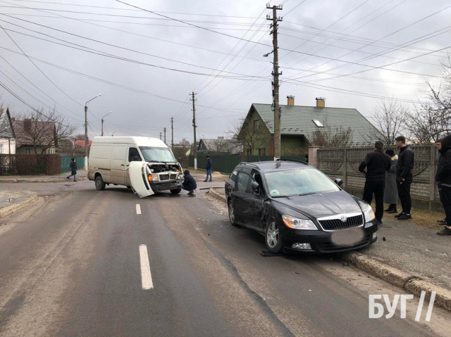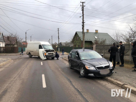 Зіткнулися бус Volkswagen та Škoda. Бус виїжджав з другорядної дороги та не надав переваги в русі водію Škoda. Останього від удару відкинуло на тротуар.
