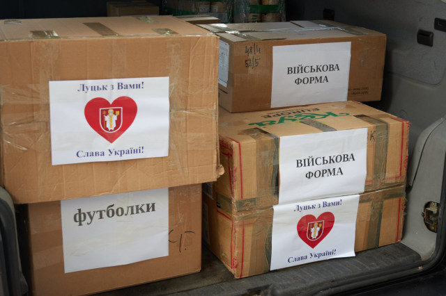 Працівники Луцької міської ради відправили на передову автівку, форму та взуття для військових.