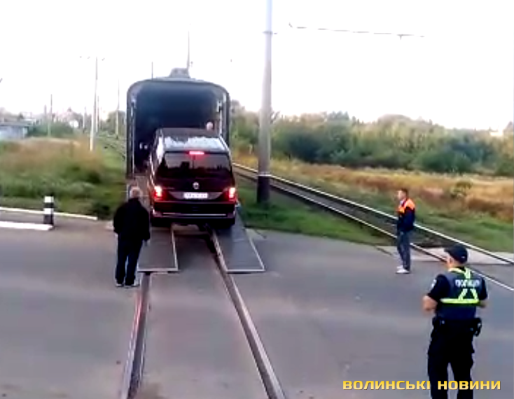 Як видно з відеоролику, вивантажували автомобілі прямо на переїзді, у супроводі працівників поліції.Як повідомляло ІА Волинські Новини, завтра, 23 серпня, з робочим візитом у Луцьк прибуде Володимир Гройсман. Згідно з попередньою програмою, він відвідає школу №27, заводи «Мотор» та «Кромберг енд Шуберт» тощо.