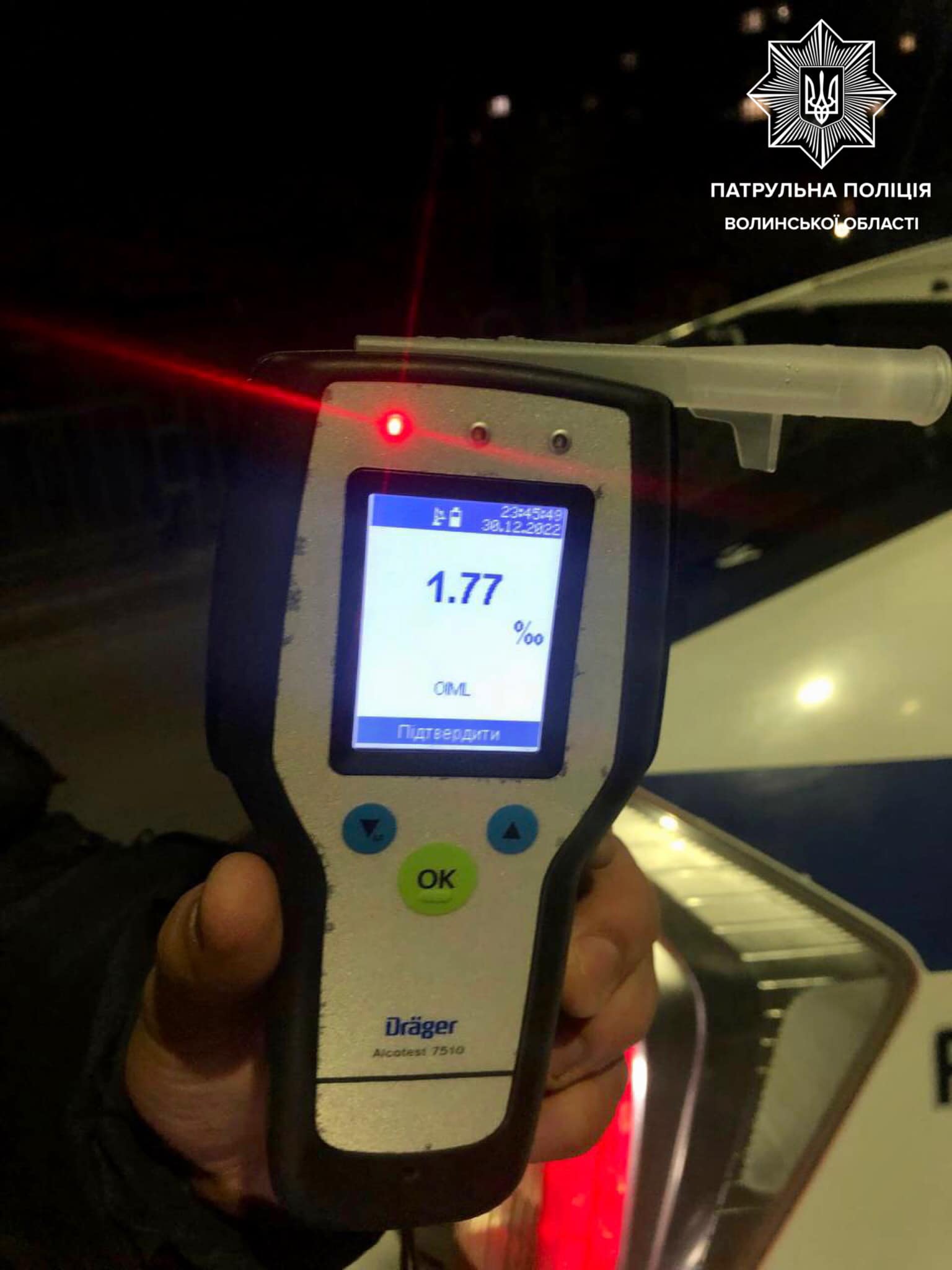 На проспекті Перемоги 29-річний керманич порушив правила дорожнього руху. І при перевірці документів у нього також були виявлені ознаки алкогольного сп’яніння. Огляд за допомогою приладу Драгер, показав результат – 1, 77 проміле.