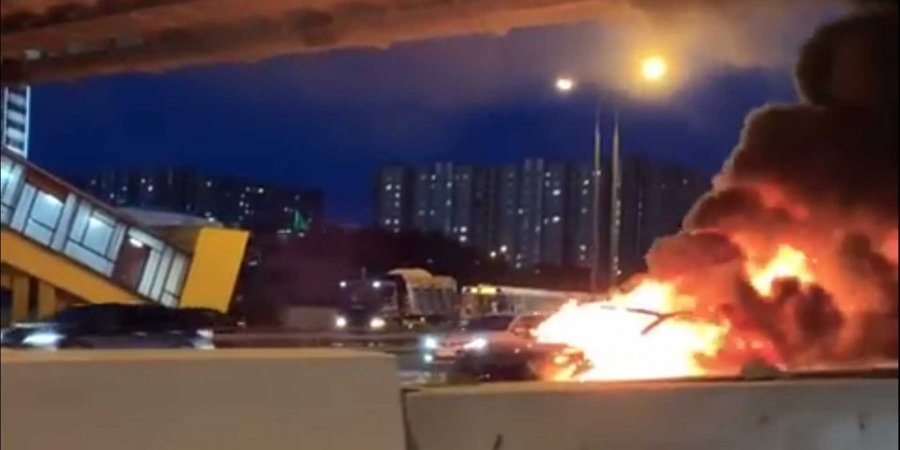 Електрокар Tesla рухався московською кільцевою дорогою на автопілоті, врізався в евакуатор ГАЗель і загорівся.