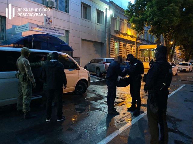 «Слідчі територіального управління Державного бюро розслідувань, розташованого у місті Києві, спільно з працівниками Головного оперативного управління ДБР та працівниками СБУ за процесуального керівництва прокуратури Київської області затримали начальника та заступника Павлоградського відділу поліції ГУ Нацполції в Дніпропетровській області, начальника сектору цього ж відділу поліції та 4 оперативних працівників», – йдеться в повідомленні.