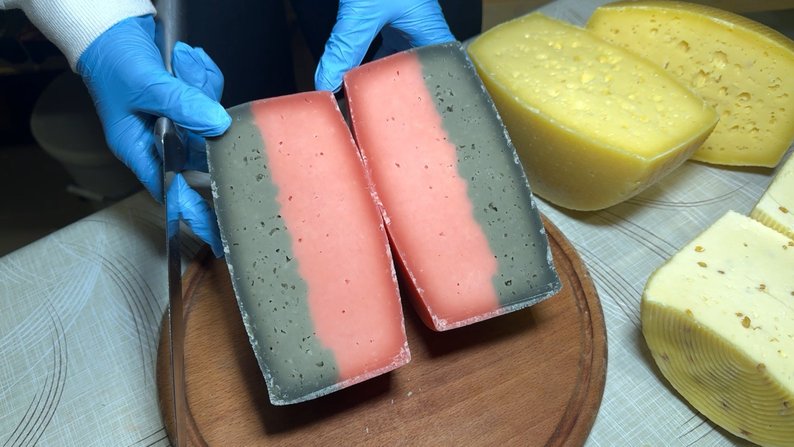 Серед найулюбленіших сирів, які виготовляє, каже Сергій, його авторський – «Бандерівський». Його й розмалював відповідними кольорами – частина чорна, пофарбована чорнилом каракатиці, а інша частина – червона. Цей сир готують і витримують впродовж 90 днів.«Це наш сир із блакитною пліснявою. Це перша головка, яка нам вийшла за пів року, така, як я кажу, хороша, гарна і те, що ми очікуємо. До цього наші всі сири з голубою пліснявою дуже гарно їли кури і собаки, вам чесно скажу. Так, як і камамбер», – говорить Сергій.Варіння сиру, кажуть Федорові, – справа не з легких. Робочий день ненормований – розпочинається о 8:00, 9:00, а ось закінчується по-різному, інколи навіть після 00:00.