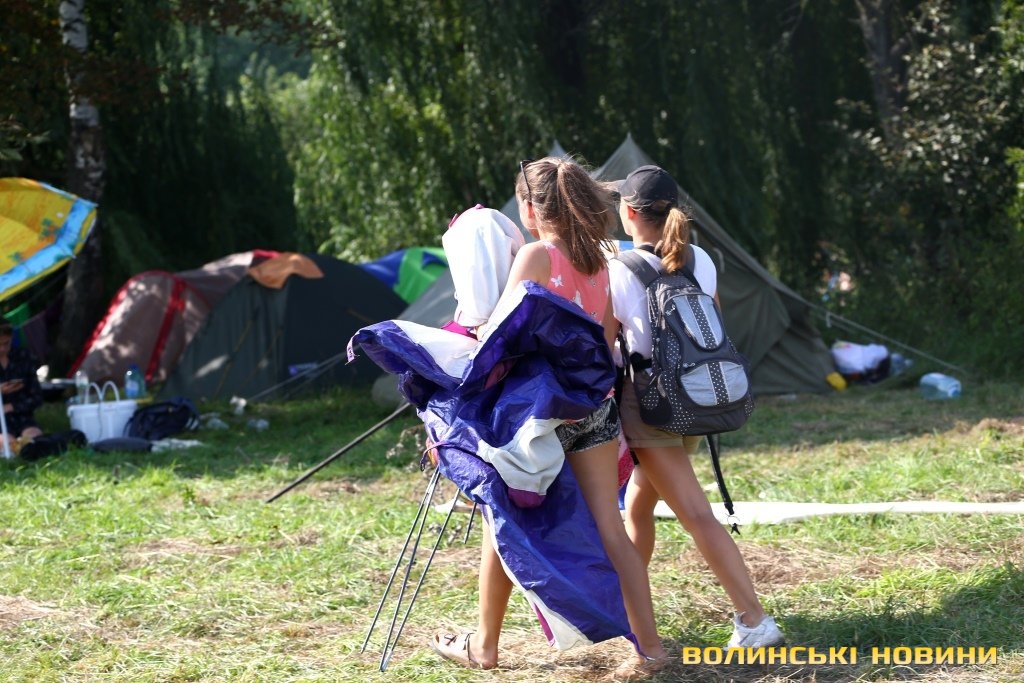 Вже зранку дехто з бандерштатівців релаксував у затінку наметів під звуки гітари. А дехто ретельно намащував одне одного сонцезахисним кремом, або ж просто обливався водою.