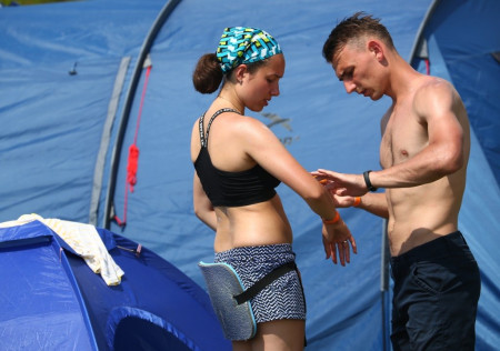 Крем проти засмаги, купання у річці, обливання водою та каякінг: другий день поспіль на території «Бандерштату» панує нестерпна спека, тож гості фесту знаходять різні способи боротися з нею.