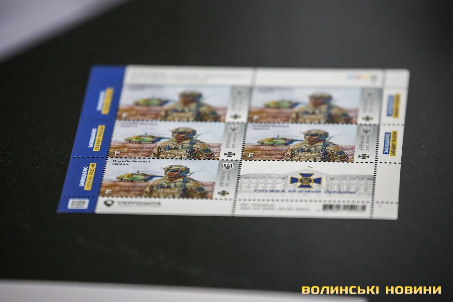 З початку повномасштабного вторгнення працівники Служби безпеки України роблять усе для нашої перемоги: звільняють українські території, виконують унікальні спецоперації, працюють у найгарячіших точках війни. Також СБУ протидіє впливу російських спецслужб, вичищаючи зрадників всередині країни, документує воєнні злочини рф для міжнародного трибуналу та нейтралізує ворожі кібератаки.Директор Волинської дирекції АТ «Укрпошта» Іван Люсак відзначив, що за час повномасштабної війни унікальні спецоперації, виконані оперативно-бойовими підрозділами СБУ, ставлять високу планку для спецпризначенців інших країн. Деталі багатьох з цих операцій стануть відомі після перемоги, яку працівники СБУ щодня наближають разом з усіма іншими захисниками.Він повідомив, що тираж поштової марки складає 1 мільйон 75 тисяч примірників. У випуску презентується поштова марка, у поштовому блоці є п’ять марок та купон з гербом СБУ, ціна маркового аркуша – 115 гривень. До марки також випустили конверт «Перший день», немаркований художній конверт та художню картку. Волинь отримала обмежений тираж – чотири тисячі екземплярів. Придбати марки можна у відділеннях «Укрпошти» та онлайн в офіційному поштовому магазині.Помічниця начальника СБУ у Волинській області Іванна Поліщук зауважила, що здавна на марках зображають важливі події або видатних героїв.