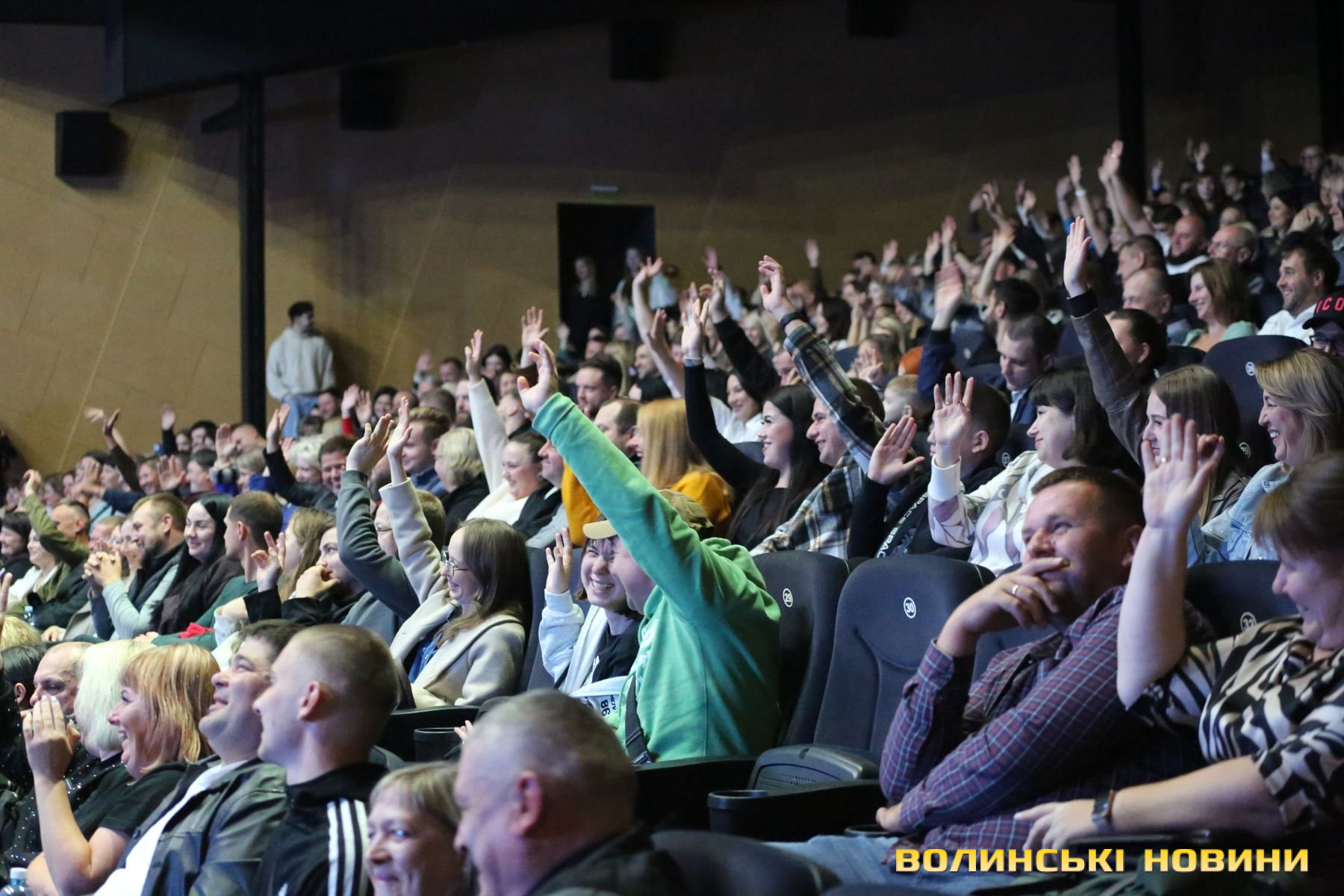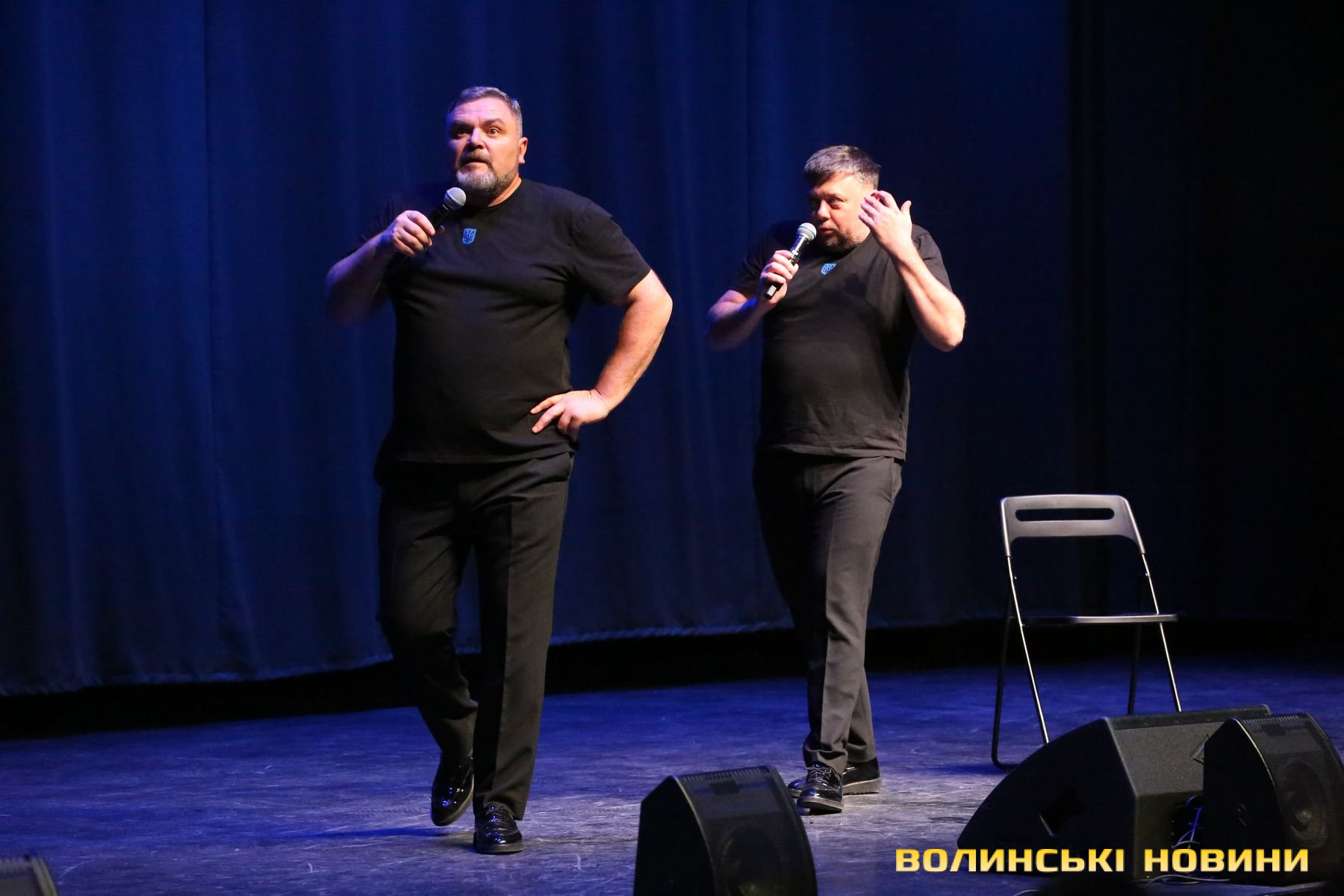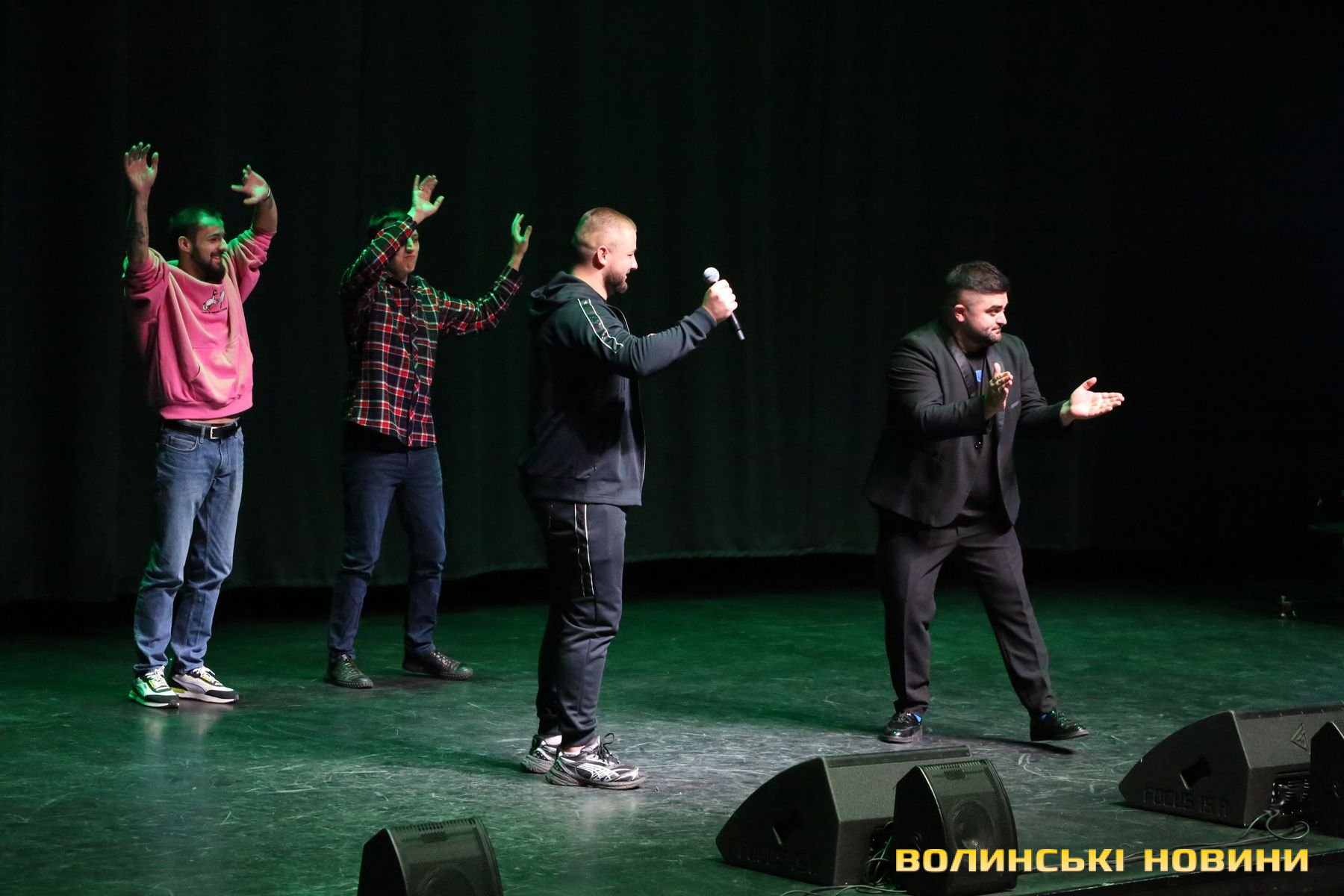 «За три роки дали понад 600 концертів на підтримку Збройних сил України. Тому ми мало часу буваємо вдома. Раді нарешті виступити в Луцьку й дякуємо кожному, хто завітав», – звернувся Назар Пащук.Читати ще: «Западенці» збирали на ЗСУ: у Луцьку – концерт учасників «Ліги Сміху». Фоторепортаж