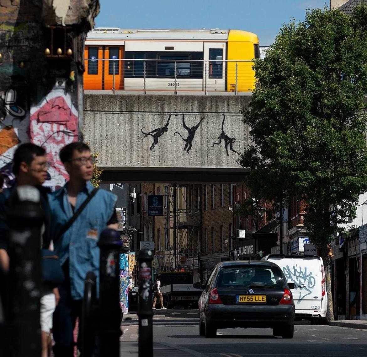 Новий твір Бенксі відрізняється від попередніх з силуетами козла, слонів, мавп, вовка, пеліканів і кота, які з’являлися в різних місцях Лондона з початку тижня.