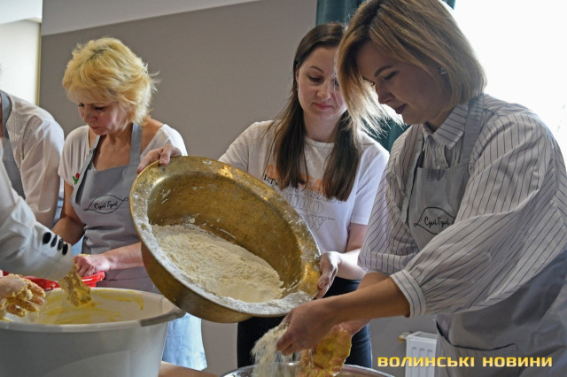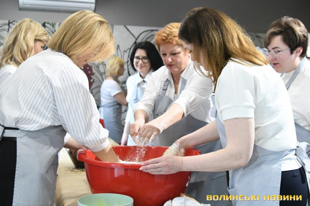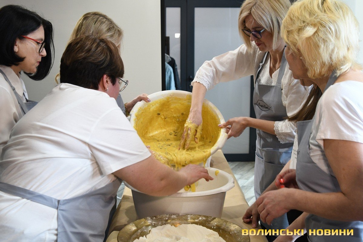 «Ми зібрали лідерок думок. Кожна з них на своїй посаді робить дуже багато для Луцької громади та Волинської області загалом, – розповіла очільниця управління соціальних служб для сім’ї, дітей та молоді Луцької міської ради Ліна Галан. – Коли чоловіки охороняють кордони нашої держави, ми повинні охороняти тили. Тому ми вирішили колективно спекти паски, які передамо військовослужбовцям Збройних сил, зокрема пораненим бійцям».Кожна господиня має свої секрети випікання паски. Нотаріус Тетяна Волянська готує цей святковий хліб понад 25 років.