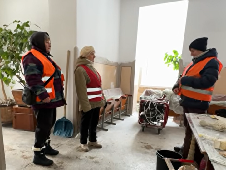 «Ми зранку виходимо раніше, сміття збираємо, відгортаємо, посипаємо, щоб для людей було комфортно, який би мороз не був – чи −17 чи −20, то мусимо виходити і прибирати. Як гріємося? Трохи поробили і прийшли у диспетчерську погрілися і пішли далі», – говорить двірничка.