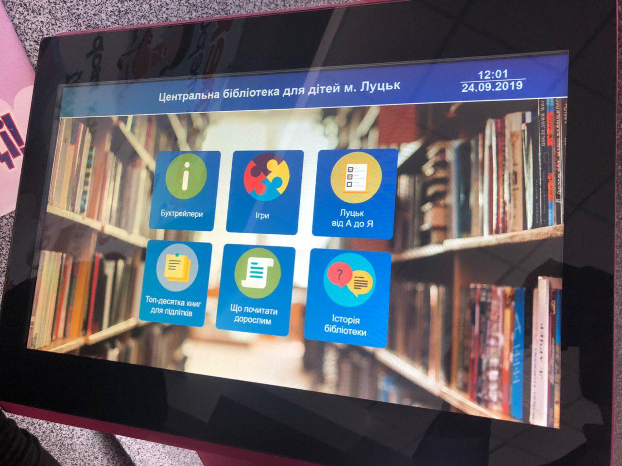 На вході відвідувачів очікує інформаційний кіоск, де на сенсорному екрані можна знайти актуальну інформацію про нові надходження літератури, цікаві події та заходи, які заплановані, тощо, йдеться на сайті Луцькради.