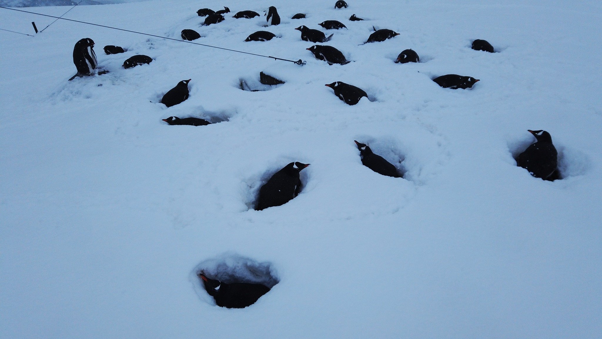 «Полярники героїчно відкопуються зі снігу вже багато днів поспіль, пінгвіни і пінгвінята не постраждали», – йдеться у повідомленні.