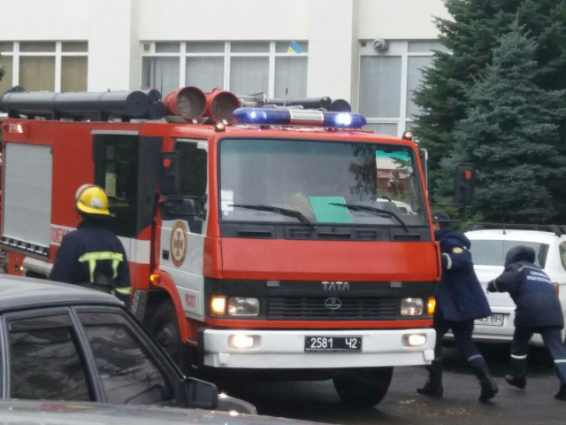 Біля корпусу СНУ працювало кілька пожежних машин