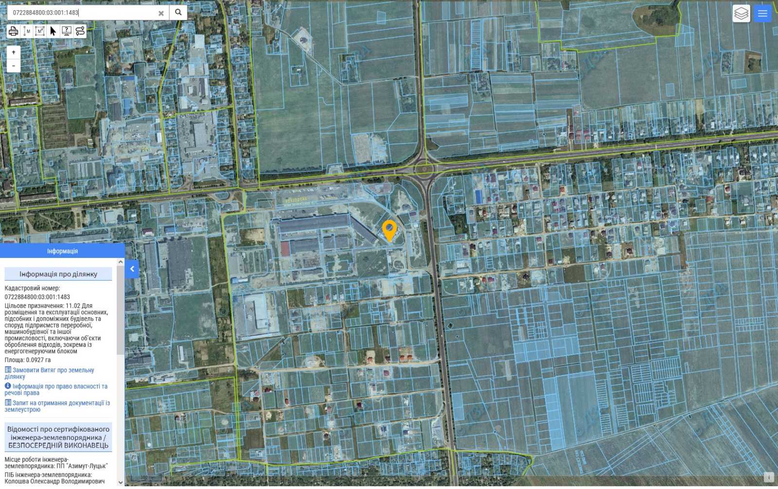 Як лот виставлено продаж земельної ділянки у власність площею 0,0927 га, кадастровий номер – 0722884800:03:001:1483, що розташована в селі Струмівка біля Луцька.