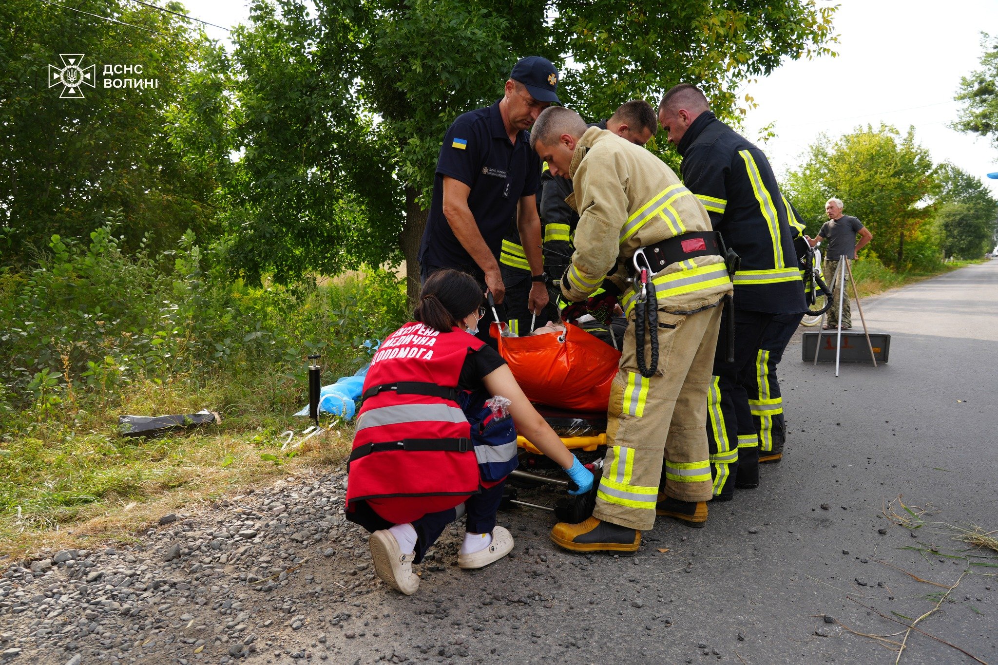 Рятувальники за допомогою спеціального інструменту деблокували чоловіка та разом з медиками за допомогою нош транспортували його до автомобіля швидкої допомоги. Також вогнеборці разом з медиками транспортували до автомобілів швидкої інших учасників ДТП.