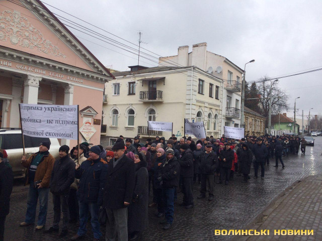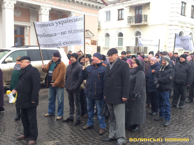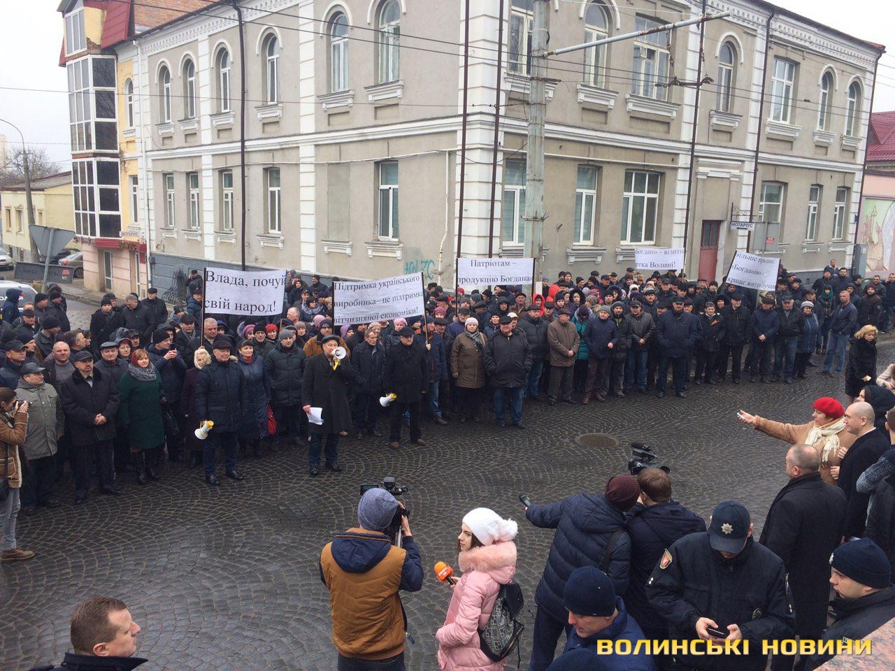 Біля Луцької міськради – мітинг працівників «Богдану» та автозаводу