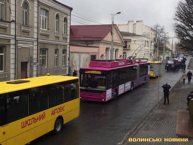 Разом з початком пленарного засідання сесії працівники «АСЗ №1» АТ «АК «Богдан Моторс» мітингують перед Луцькою міською радою, вимагаючи купувати тролейбуси, деталі до яких виготовлять на російському заводі, що спеціалізується на виготовленні військової техніки для країни-агресора.