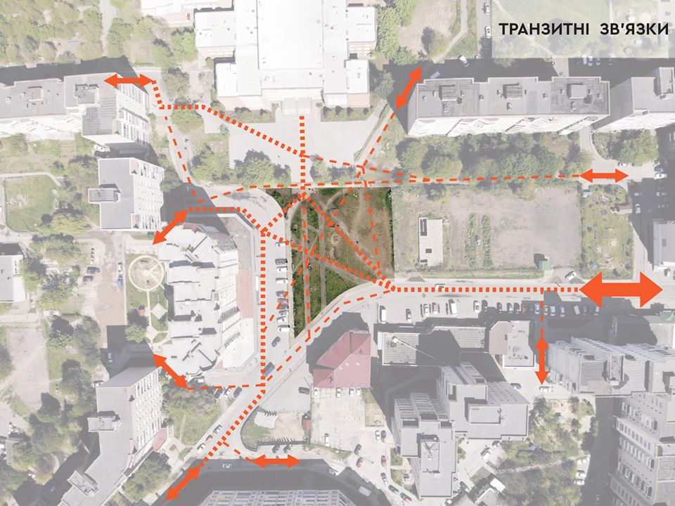 Рішення правильне, сквер дійсно потрібний. Єдине зауваження: напрямок руху людей цією територією чітко на фото, він найбільш оптимальний, тому й доріжки потрібно прокладати, виходячи з цього, інакше знов будуть ходити по газонах, щоб не здійснювати обхідні маневри