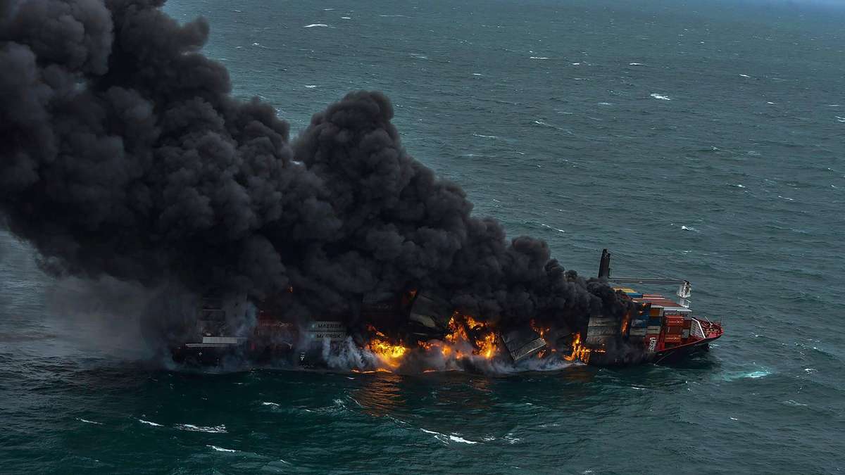 Біля Шрі-Ланки горить контейнеровоз із азотною кислотою, пластмасою та хімікатами. Відео