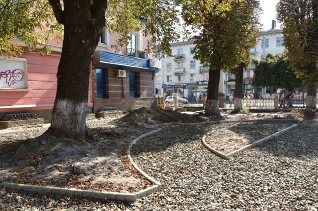 Міська влада підшукала для підприємців, які тут торгували квітами, інше місце для ведення їхньої підприємницької діяльності. Нині вони уже працюють у комфортних павільйонах біля Волинської обласної філармонії. А тут тривають активні ремонтні роботи: працівники підприємства “Вишків-Брук” демонтували стару бруківку, проводять підготовчі роботи для створення нових пішохідних доріжок.