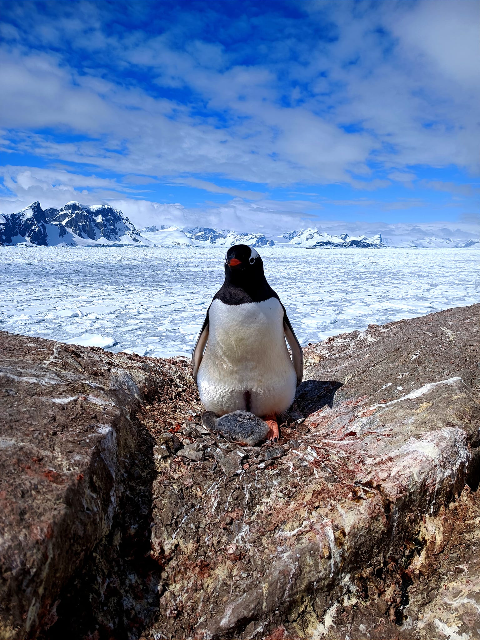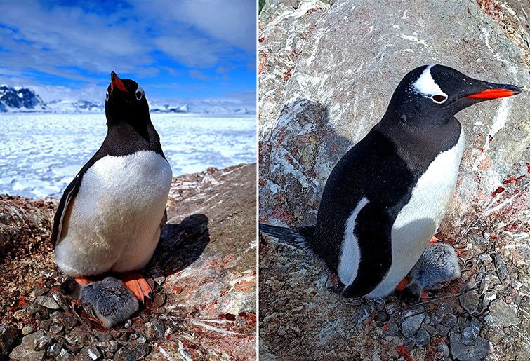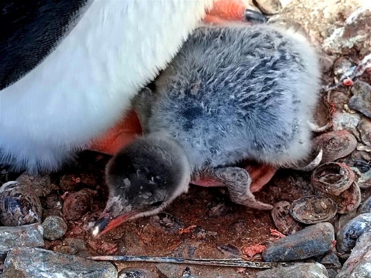 «Моніторинг гнізд пінгвінів на нашому острові Галіндез – це частина щоденної роботи біологів, але от саме нині ми порахували за днями, що з перших яєць якраз мають почати вилуплюватися пінгвінята.Перевірили гнізда на мисі Пінгвін-поінт, де в листопаді виявили найперші яйця, але там було тихо. Потім вирушили на сусідній мис Піджн-поінт. Підійшли до гнізд, затихли – і тут почули зовсім тоненький голосок малечі, а відтак – побачили й горду матусю», – розповіла про знахідку біологиня Марта Дзиндра.