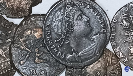 Коли саме дайвер побачив їх, не повідомляється. Знайдені монети сортуються.