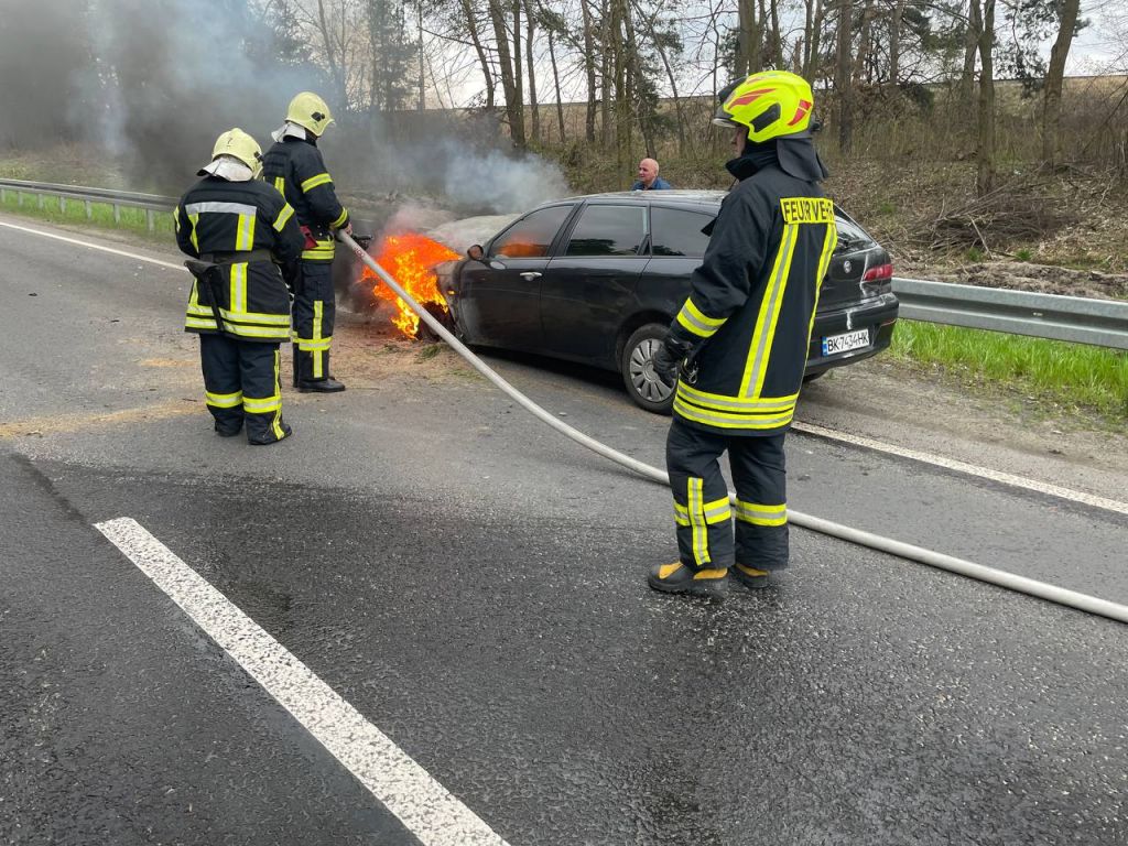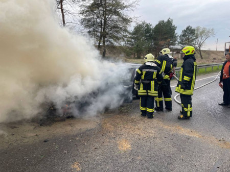 Біля Володимира на дорозі спалахнуло авто. Відео