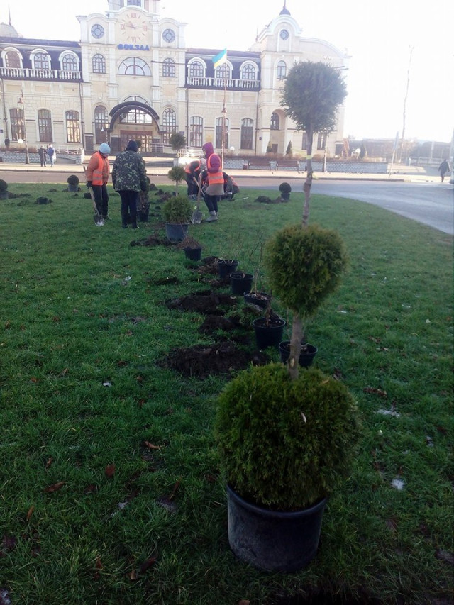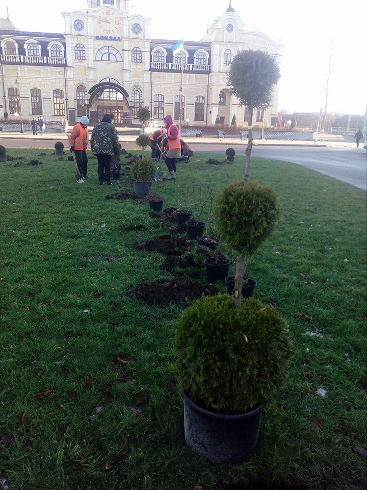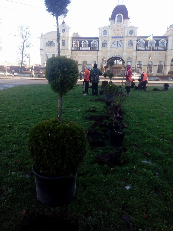 Біля залізничного вокзалу у Луцьку висадили хвойні рослини