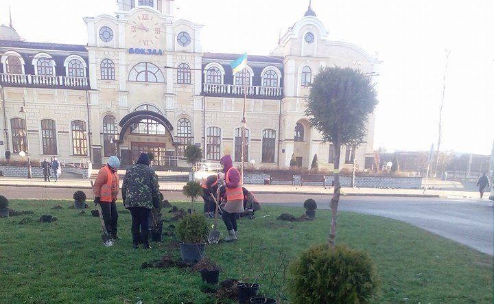 Зокрема, поблизу залізничного вокзалу на клумбі висадили кущі багаторічних рослин.