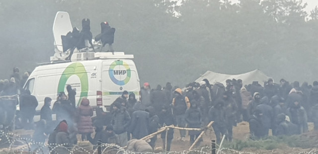 «Помічаємо рух серед мігрантів. Також є фургон телевізійного мовлення», – повідомили польські прикордонники.