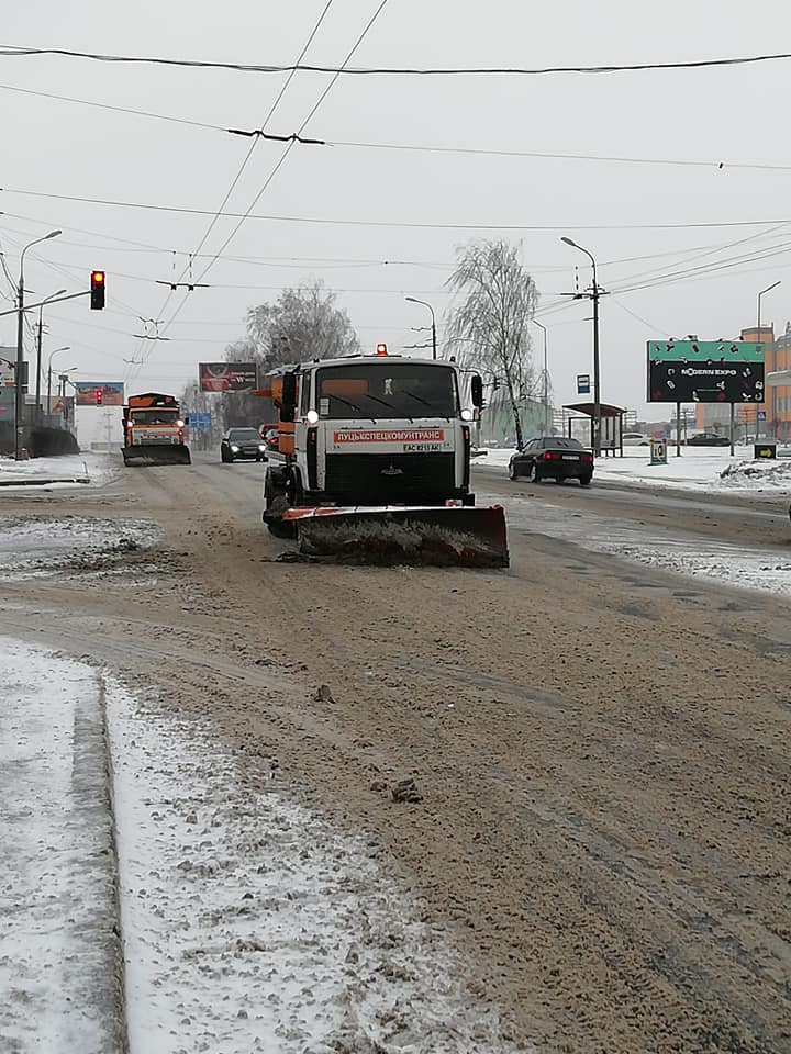 Станом на 15:30 дороги та тротуари Луцька, які засипає рясним снігом, чистять 12 одиниць тротуарної техніки та 8 одиниць великих снігоочисних машин. До прибирання міста задіяні також солерозкидачі та машини з відвалами, які працююють у «трійках».