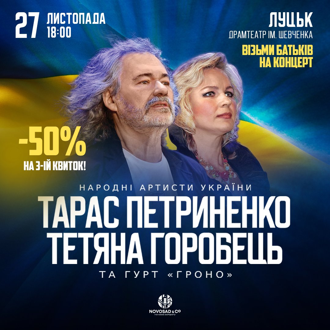 27 листопада о 18:00 у Волинському академічному обласному українському музично-драматичному театр імені Т. Г. Шевченка відбудеться великий сольний концерт Тараса Петриненка.